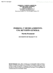Este documento tiene el propósito de discutir sobre el tema de pobreza y medio ambiente, y su relación con el desarrollo.