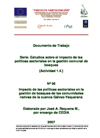 La finalidad de este documento es establecer y analizar los impactos de las políticas sectoriales en la gestión de los bosques que ancestralmente manejan las comunidades nativas, particularmente en el ámbito de la cuenca del Río Gálvez y Yaquerana, correspondiente a la comunidad nativa del Pueblo Matsés.