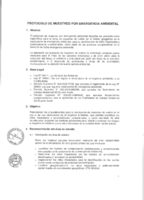 Este protocolo tien el objeto de estandarizar los proced¡m¡entos para la recolección de muestras de suelos en el marco de una declaratoria de emergencia ambiental, que permita identificar los sitios ¡mpactados y potencialmente contaminados, y como resultado de esta identificación proponer las medidas adicionales para reducir y controlar los riesgos e impactos al ambiente y a la salud derivados de la contaminación de los suelos.